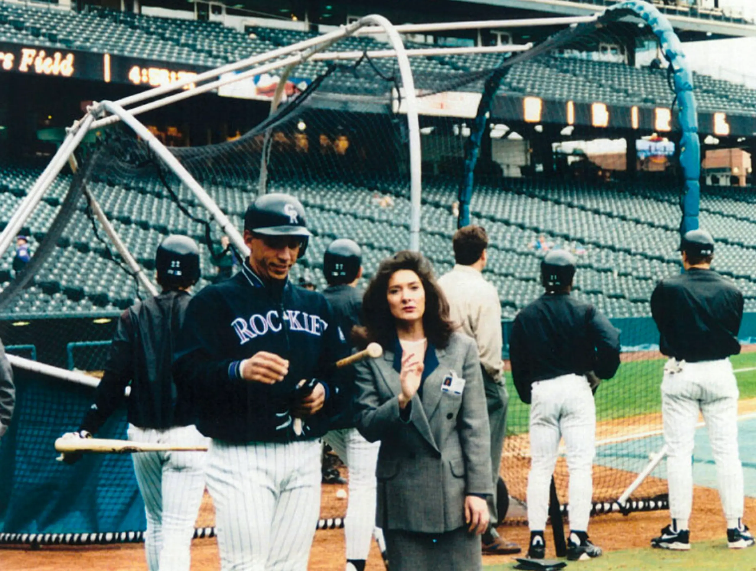 In the early 1990s, Linda Alvarado purchased the Colorado Rockies and became the first Hispanic MLB owner — not to mention the first woman — to buy a team. Nowadays, fans can often catch her chatting with players during warmups and batting practice. Iconic.