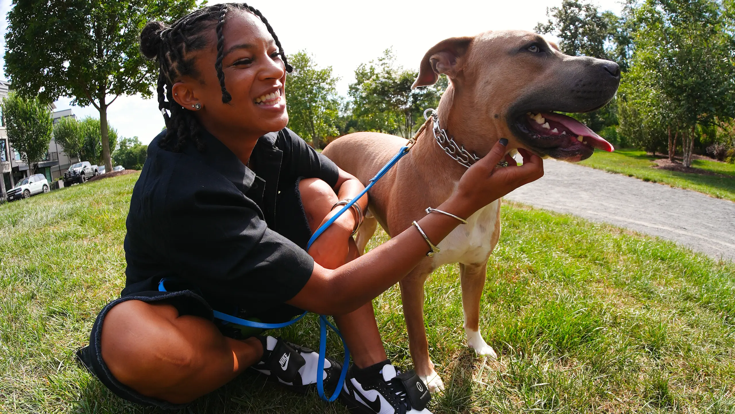 🐕 Spending time outside with her dog to connect with nature and stay emotionally present.